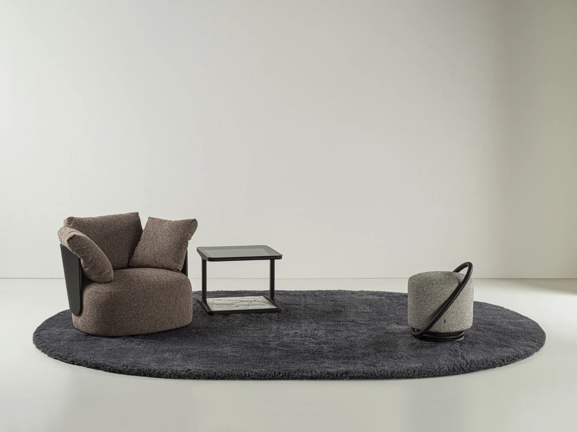 Le composizioni di charme del brand Porada arredano l'habitat con i loro colori e stile, ricreando peculiari atmosfere arredative. Complementi e tappeti completano l'arredo di casa, occupando lo spazio in modo utile e rendendolo assai funzionale e bello a vedersi. Molto versatili e plurifunzionali, i Complementi moderni in tessuto rispondono a funzioni diversificate: completano le doti pratiche e l'estetica dell'ambiente. Tappeti moderni in tessuto di Porada in tessuto: aggiungerà carattere e fascino a un interno arredato con mobili ed elementi accessori dai richiami moderni.