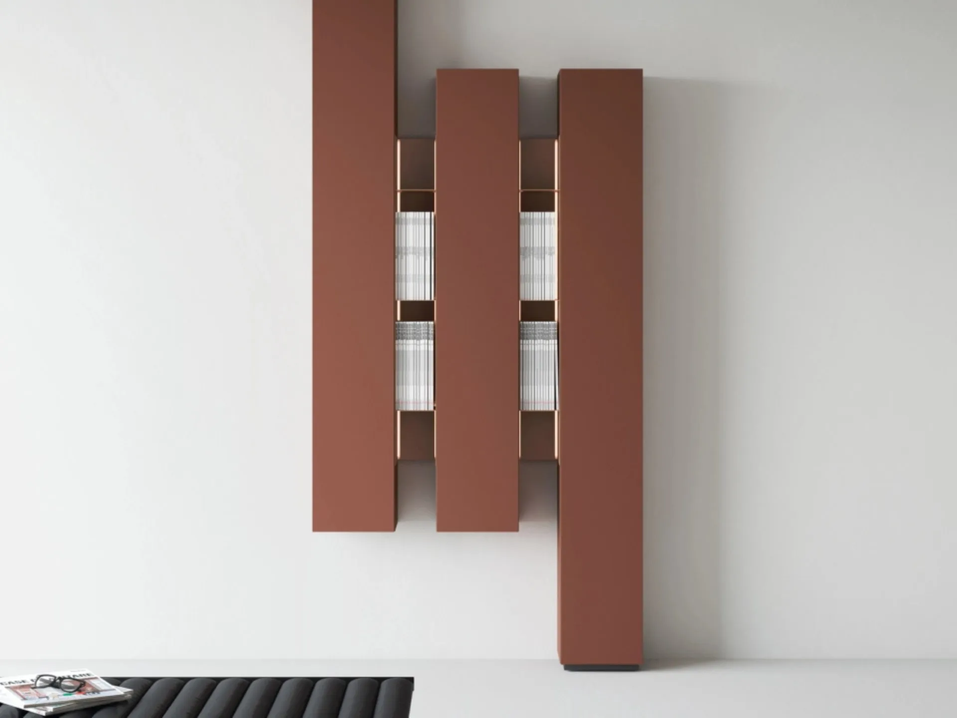 Le Librerie design sono sempre molto apprezzate per organizzare il soggiorno e i muri, unendo ottimamente doti di praticità e design. Il living è, per eccellenza, la zona della casa in cui ci dedica al relax ogni giorno, facendo due chiacchiere con amici e parenti, riposando in solitudine oppure guardando la TV. Contattaci per info e preventivi sul modello visibile in foto: se vuoi completare stanze design, allora questa libreria dalle forme decise fa per te. La Libreria Wallover di Caccaro nella fotografia, nella variante in laccato opaco, è davvero versatile e funzionale, robusta e durevole, nonché personalizzabile secondo le più particolari problematiche abitative. Le Librerie a muro Caccaro sono disponibili in diverse conformazioni: angolari, lineari, sospese e realizzabili su misura per te con differenti componenti, mensole e vani.