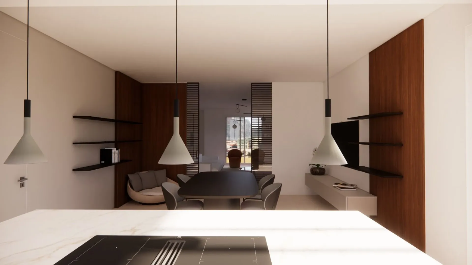 Per l’area dining, abbiamo selezionato l'eccellenza del comfort firmata Desirée: tavolo e sedie che definiscono uno stile contemporaneo e raffinato. Ogni dettaglio è stato curato dai nostri interior designer per creare un ambiente armonioso, perfetto per chi desidera cucine componibili e mobili di design in provincia di Ragusa e non solo.