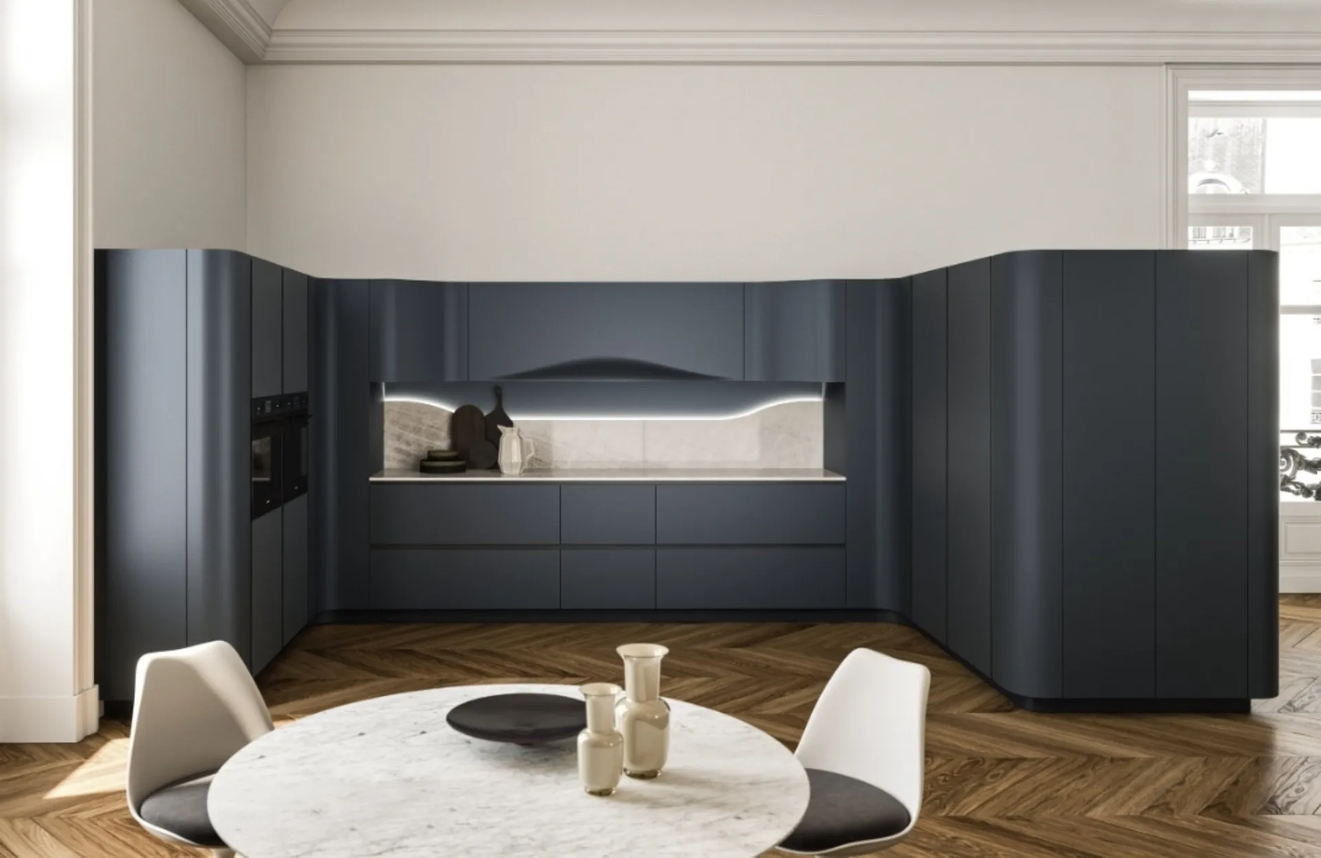 Questa proposta è costruita in laccato opaco, ma è possibile dar vita ad uno spazio unico e personalizzato grazie alla sua modularità e caratterizzazione. Snaidero ci dà la possibilità di ricreare soluzioni dal design attuale che si dimostrino in grado di rispondere alle più particolari problematiche abitative ed estetiche, in cui forme e dimensioni non hanno più limiti. Se la caratterizzazione dei mobili in chiave design è un elemento di rilievo nel progetto d’arredo del tuo habitat, il suggerimento è quello di scegliere le Cucine ad angolo del brand Snaidero, come il modello qui disponibile.