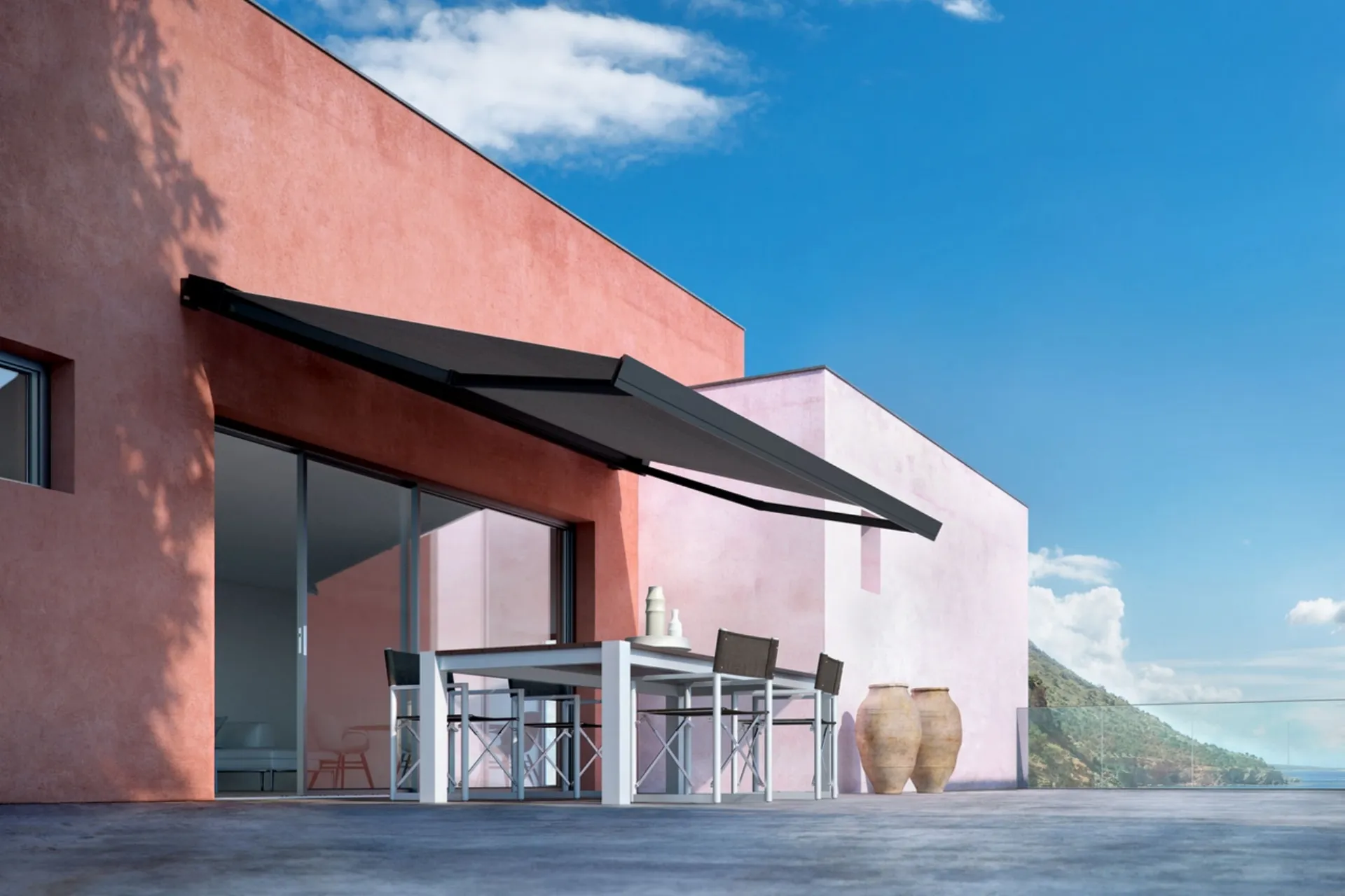 Oggigiorno, anche il giardino è ritenuto spazio domestico da attrezzare attentamente, in modo che risulti vivibile e bello a vedersi. La Tenda da sole T-Code di Pratic nella fotografia ti permetterà di ricreare un confortevole soggiorno open air, unendo grandi doti di praticità e design. Materiali di lunga durata e linee di design rendono riconoscibile tutte le Tende da sole avvolgibili a bracci firmate Pratic, sinonimo di qualità ed eccellenza. Così come negli spazi interni, anche open air è possibile esprimere il proprio stile in fatto di arredo, dando vita a composizioni di grande valore estetico.